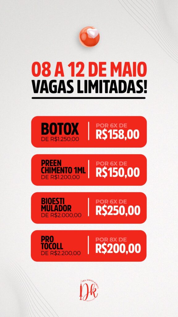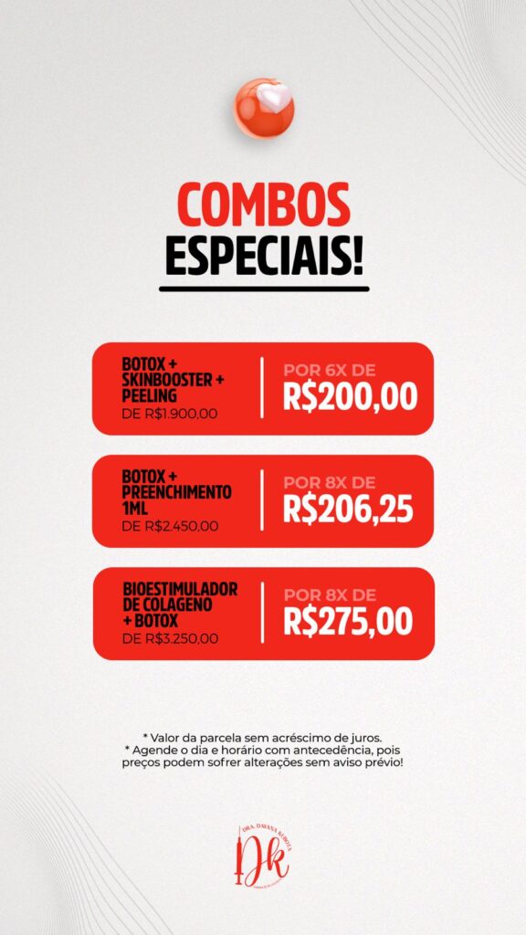 O consultório está oferecendo preços parcelados para tornar mais acessível o tratamento estético de alta qualidade. Com planos de parcelamento flexíveis, é possível escolher o melhor pacote para presentear a sua mãe (confira os quadros de ofertas abaixo).
