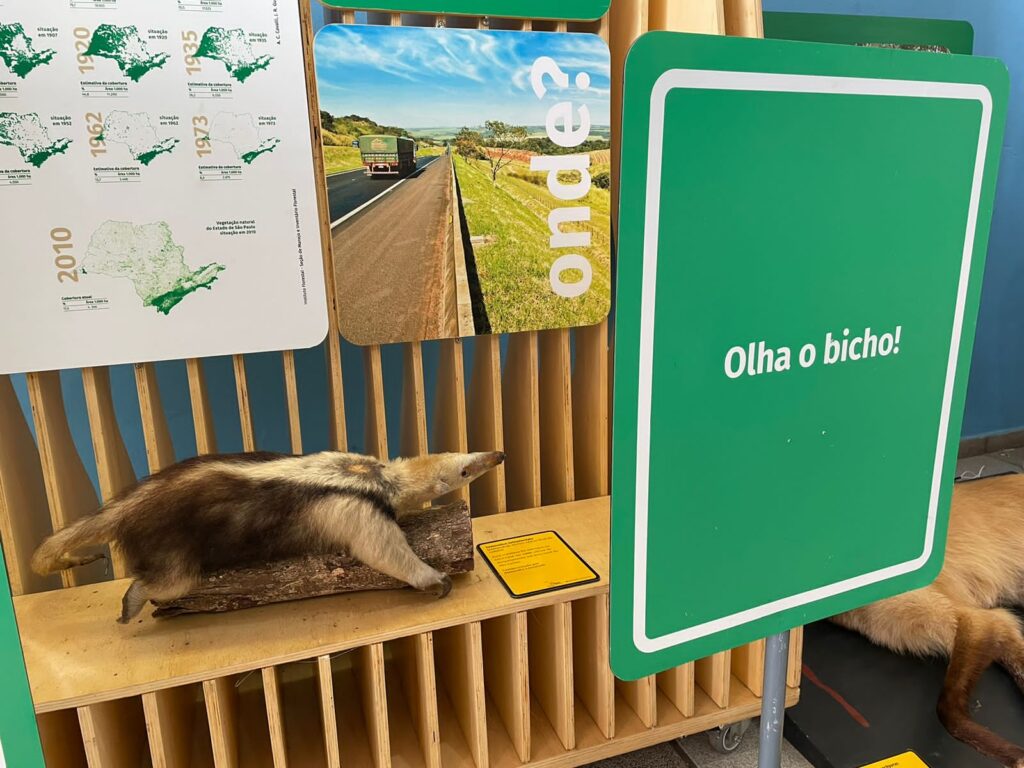 Na Exposição, o visitante ficou frente a frente com animais empalhados, como o lobo-guará, a jaguatirica, a onça-parda, o sauá e o macaco prego – espécies que frequentemente sofrem com atropelamentos na região. Os participantes também puderam compreender melhor o que tem sido feito para minimizar essas perdas.