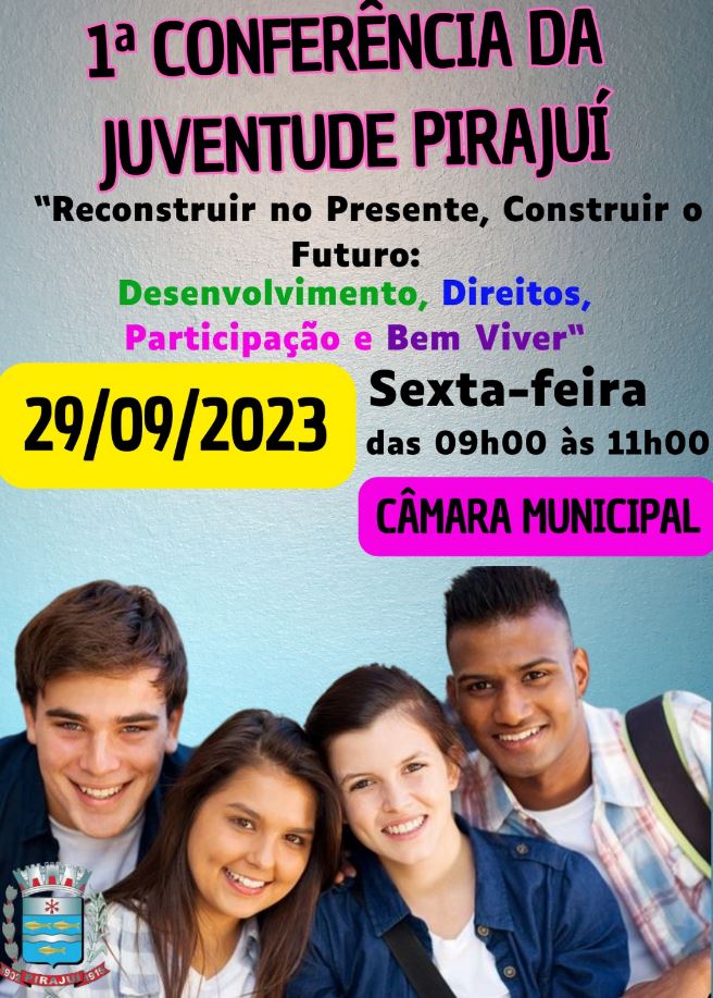 Acontecerá nesta sexta-feira (29), a partir das 9h, a 1ª Conferência da Juventude de Pirajuí. O evento tem como objetivo promover ações e políticas públicas voltadas aos jovens e adolescentes da cidade.