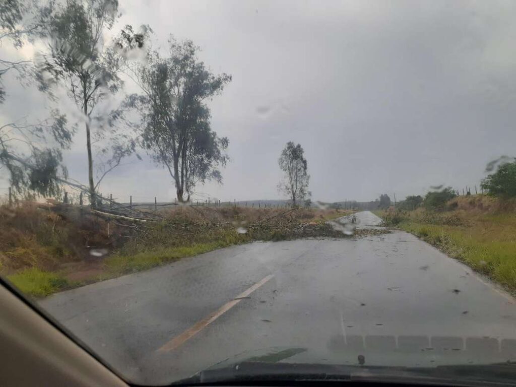 Uma árvore também caiu na Estrada Vicinal Prefeito Aníbal Haman, que dá acesso às penitenciárias I e II do município.